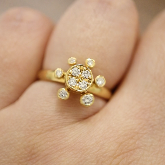 18K Pt950 Rose Cut Diamond Wavy Ring