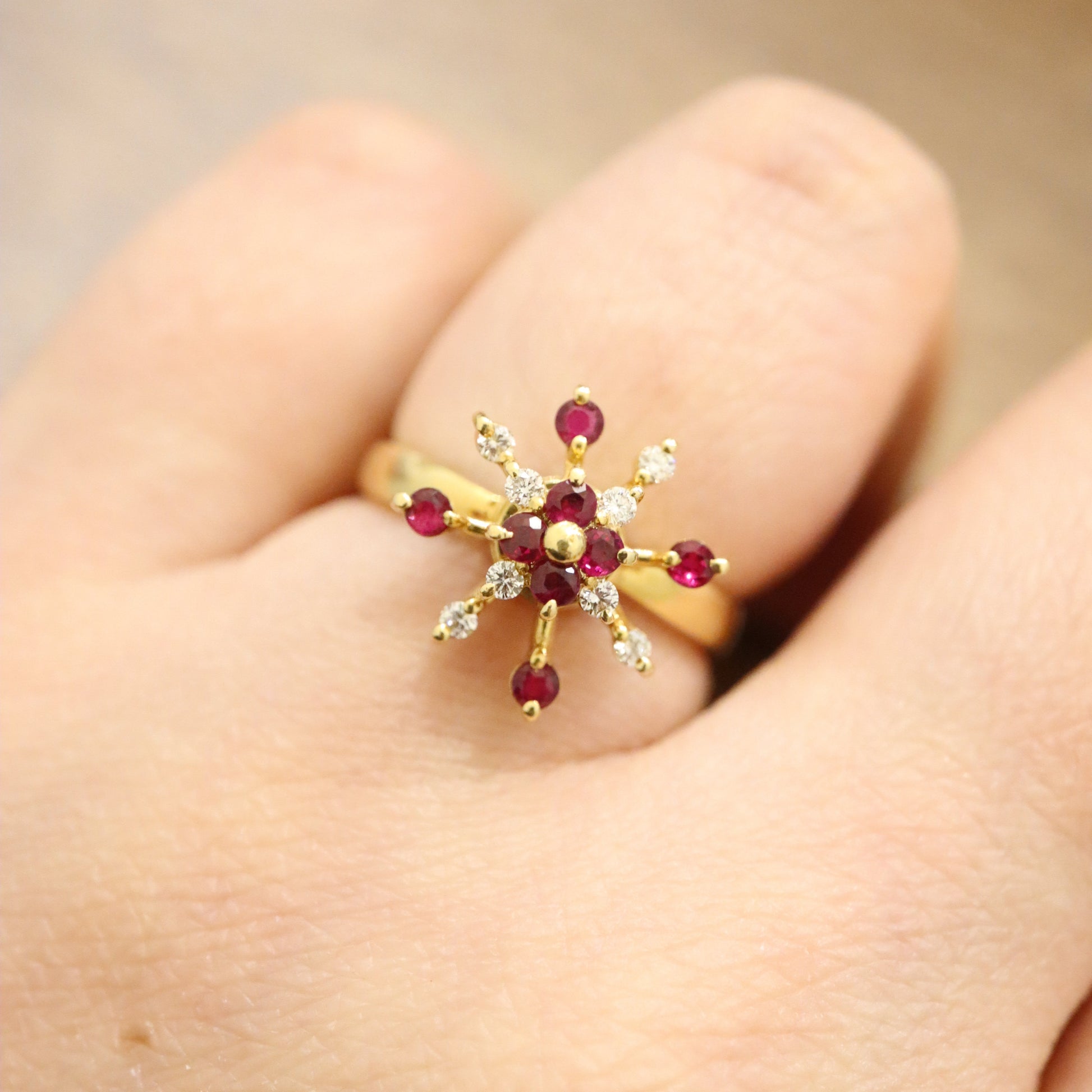 Time flows slowly, yet the charm of vintage jewelry only increases. This Waltham rotating ring features natural rubies and white diamonds.The outer circle can gently rotate, creating a beautiful display as it spins, sparkling with a unique brilliance.