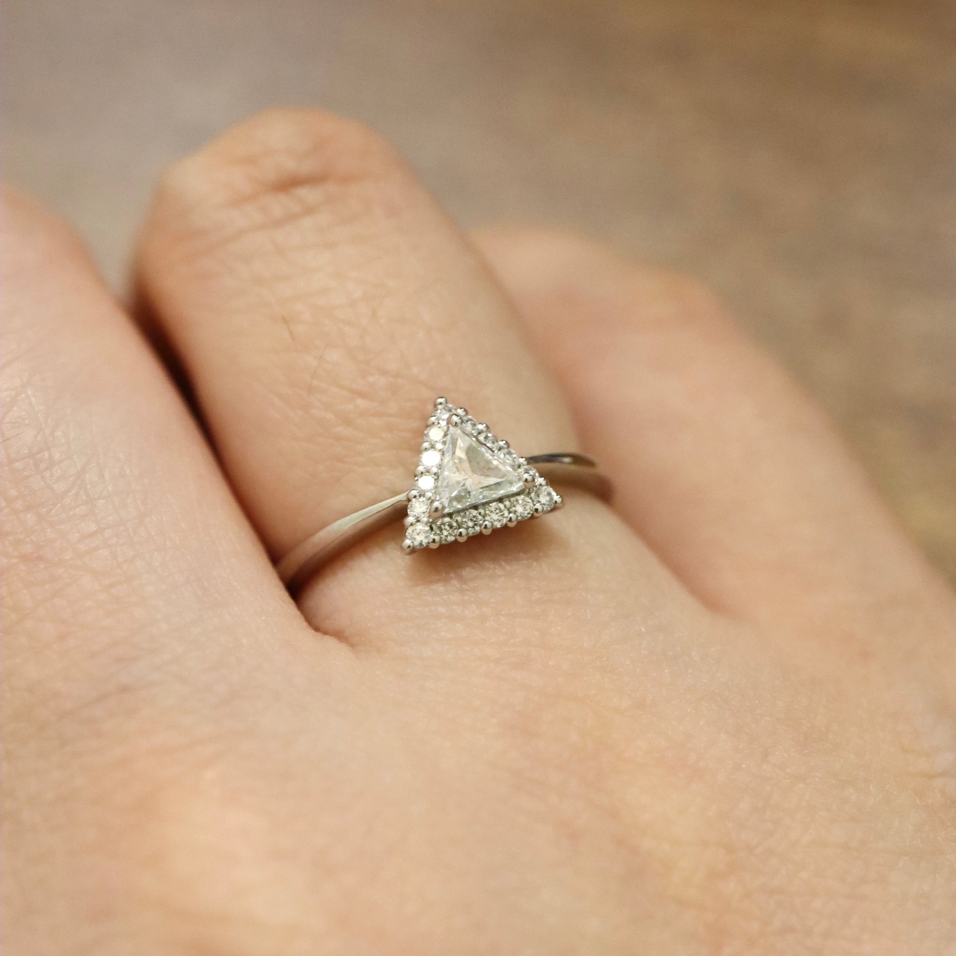 Besides common shapes like round, diamonds also come in many special cuts, such as triangular diamonds. This cut symbolizes reliability, stability, and growth, while also representing change and transformation. The unique cut, paired with exquisite surrounding brilliant-cut diamonds, enhances individuality.
