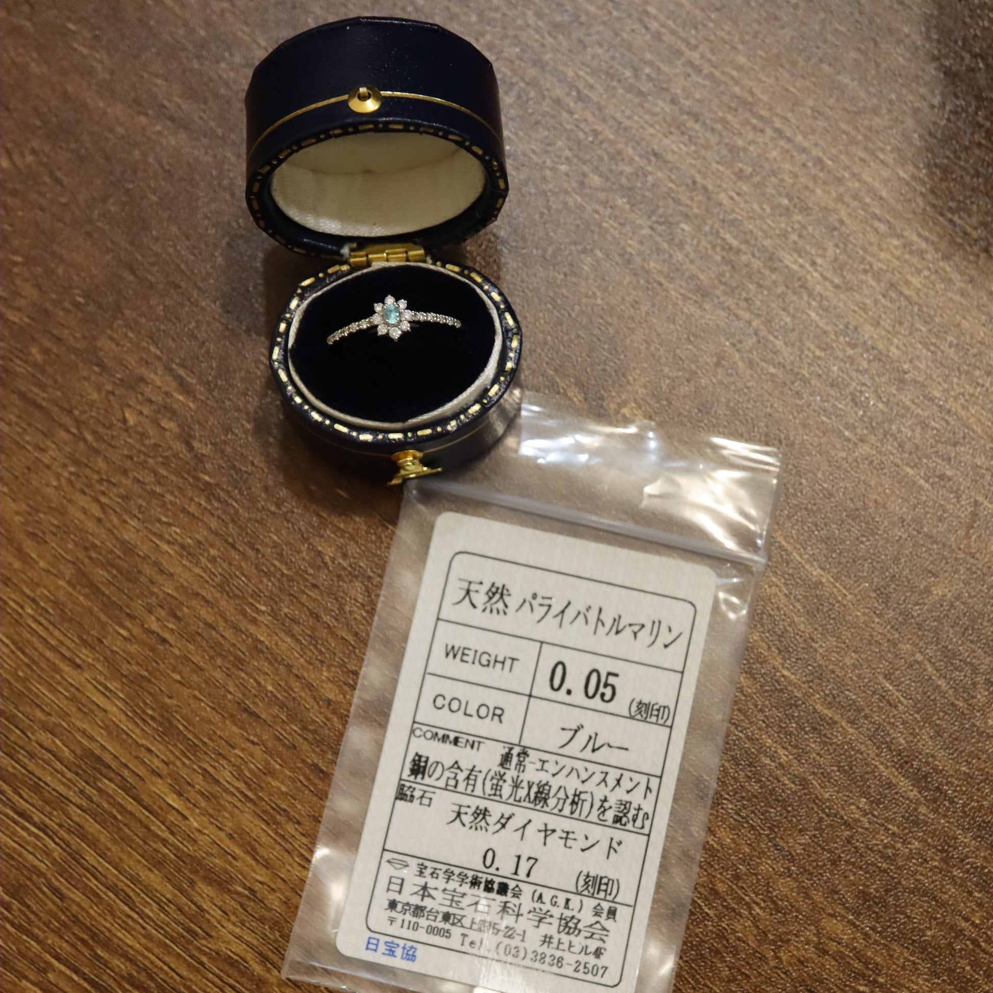 This precious Brazilian Paraiba features a special neon blue-green colour, combined with exquisite Japanese craftsmanship using natural diamonds that you can't help but admire.